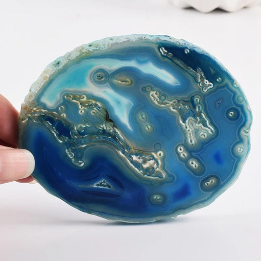 60-180mm Natural Agate Stone Slices Coaster Polished Blue Cluster Dessert Slab For Decoration