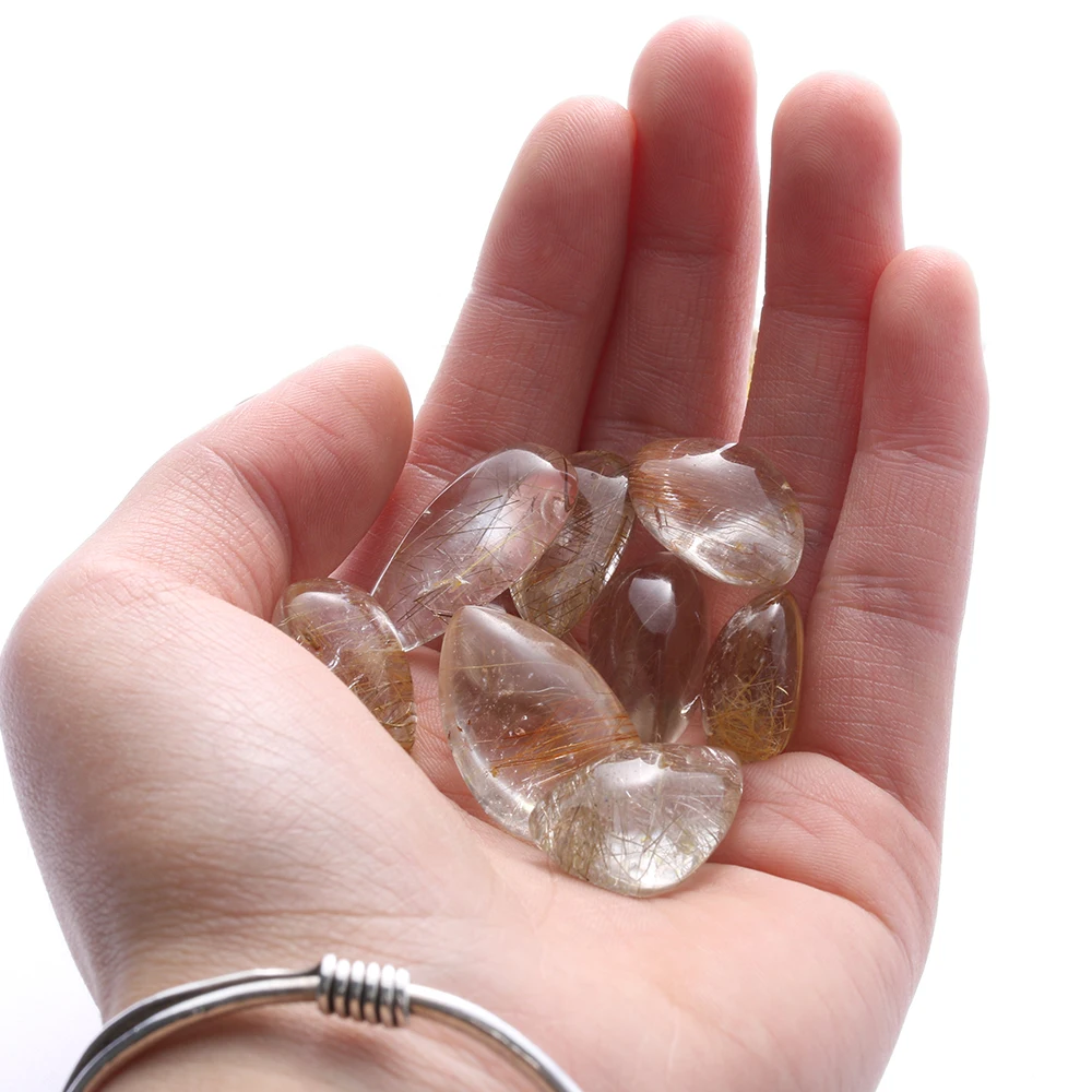Piedra pulida de Cuarzo rutilado de cristal de pelo amarillo citrino encantador Natural transparente, especímenes minerales para decoración del hogar, 1 unidad