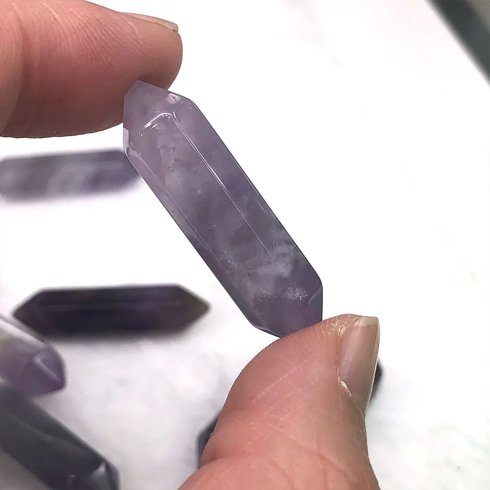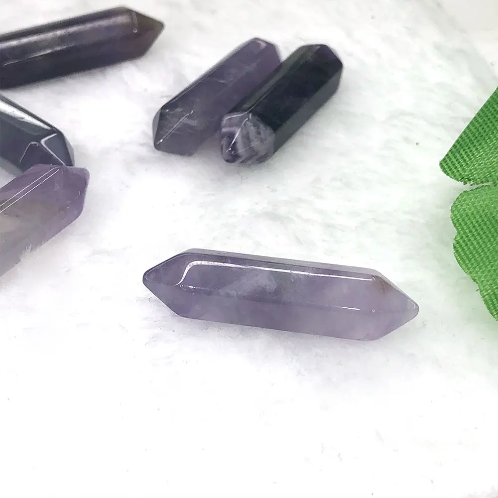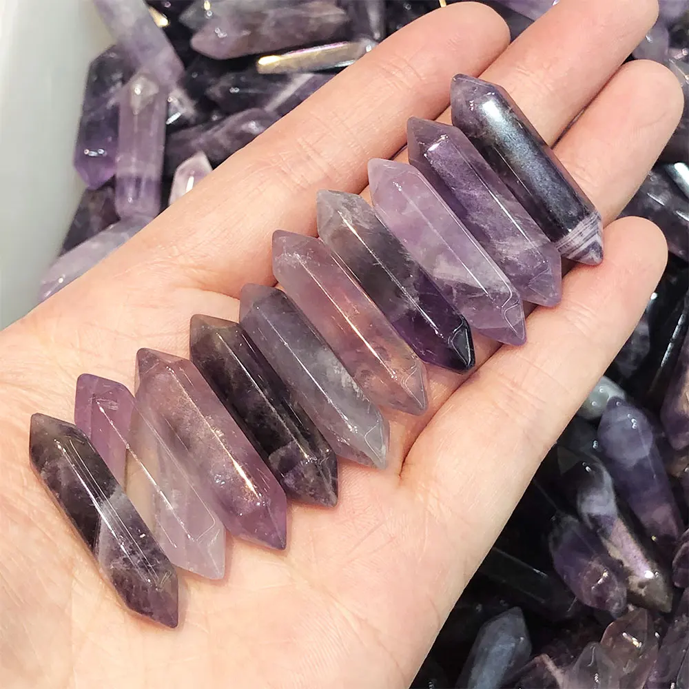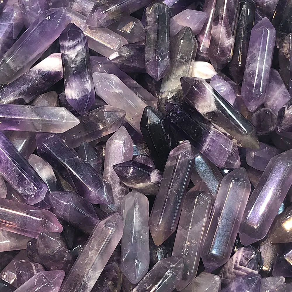Natural Amethyst Rose Quartz Double Terminated Points Tower Wand Crystal Quartz Stone Rock Collectible Mineral Specimen Healing Home Room Decoration Ornaments