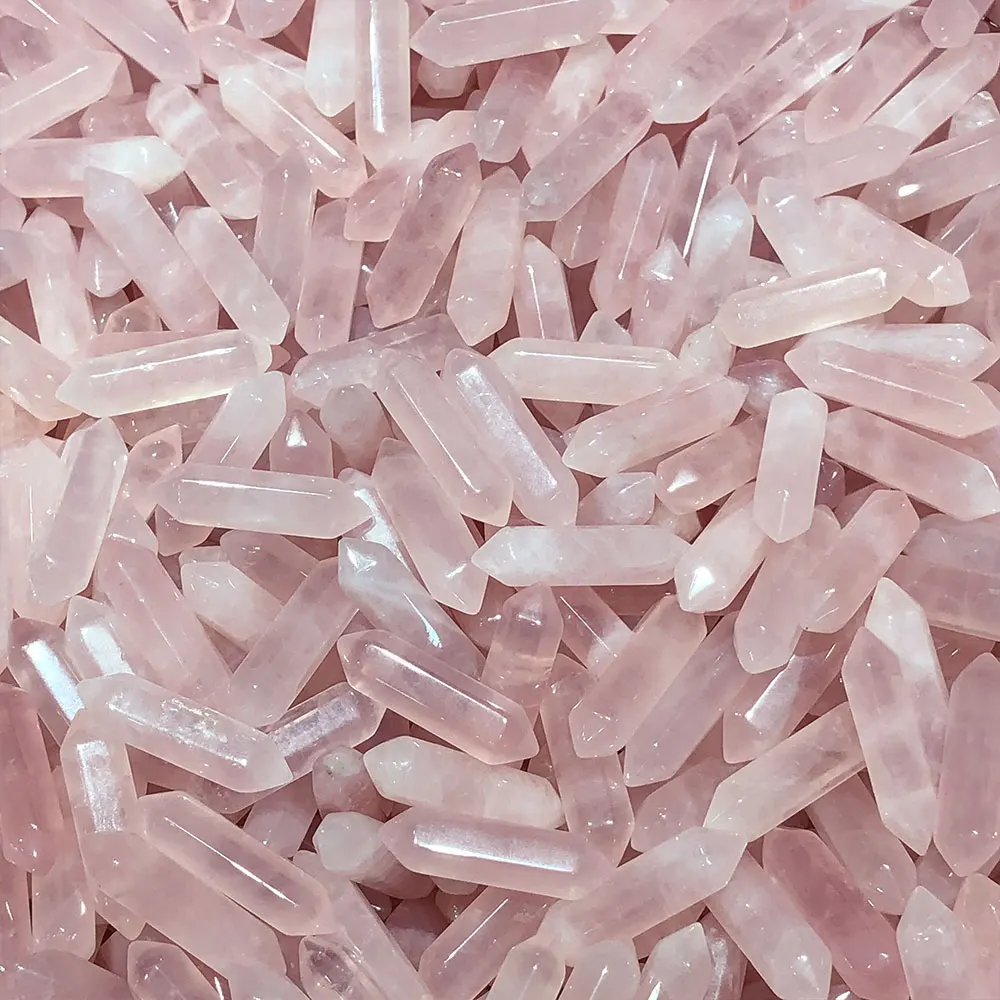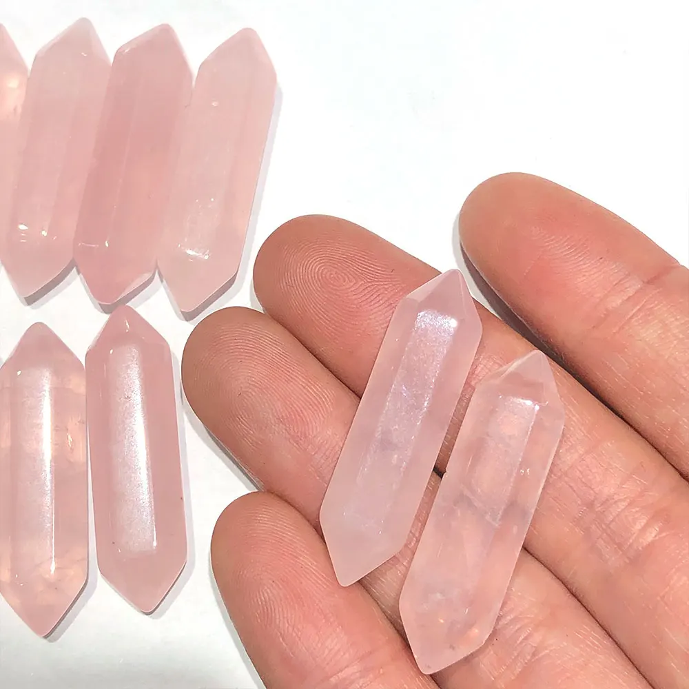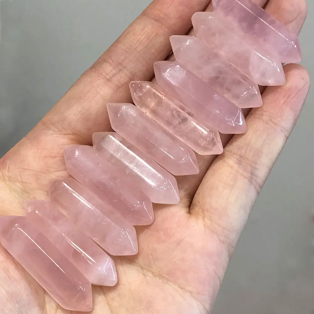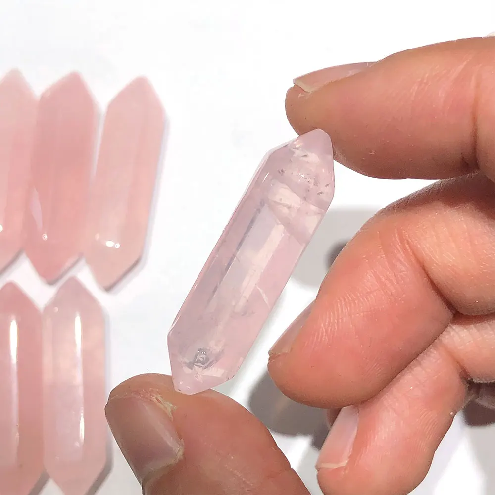 1pc Small Rose Quartz DT Points Wand Hexagonal Crystal Natural Stone Mineral Healing Reiki Home Room Decor DIY for Pendant Gift